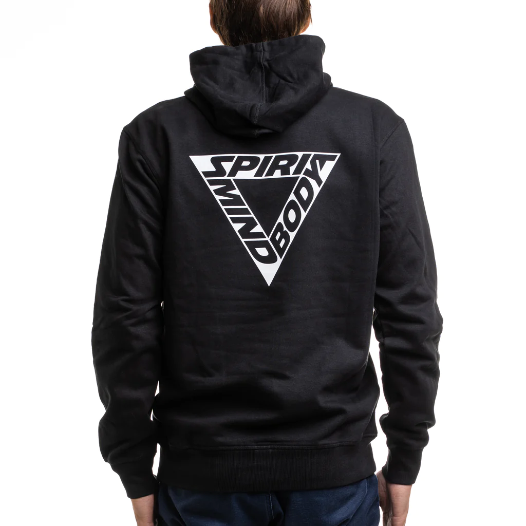 Hooded sweatshirt with kangaroo pocket with practical solution for cellphone.