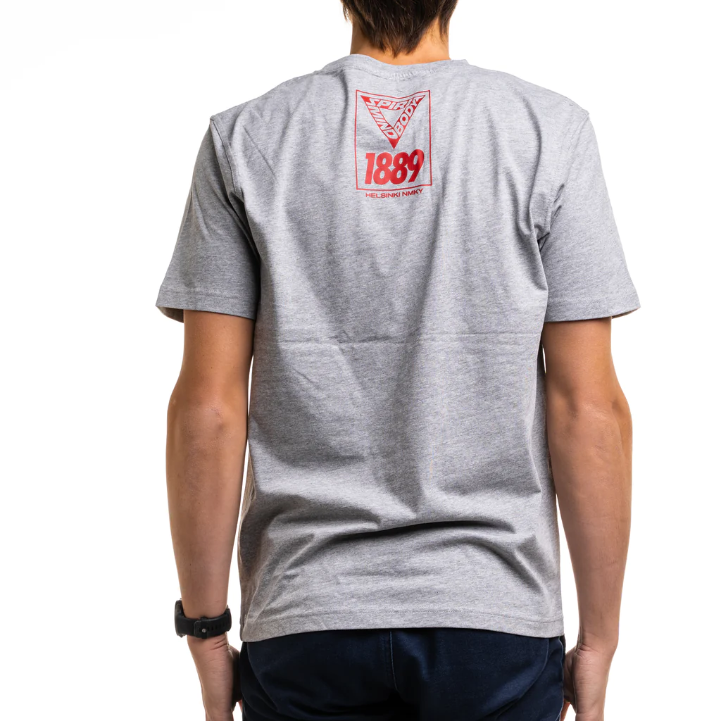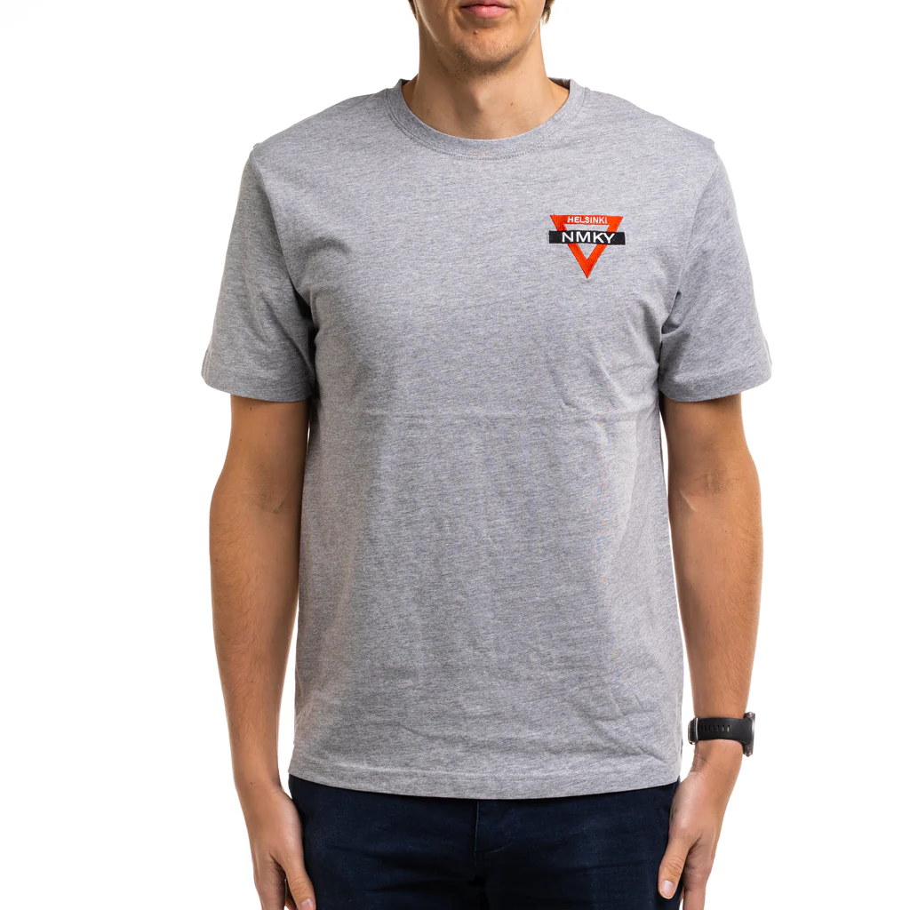 A classic round-neck T-shirt, with heavy lycra rib. It has a neck band, double stitching and stitches on the sides.